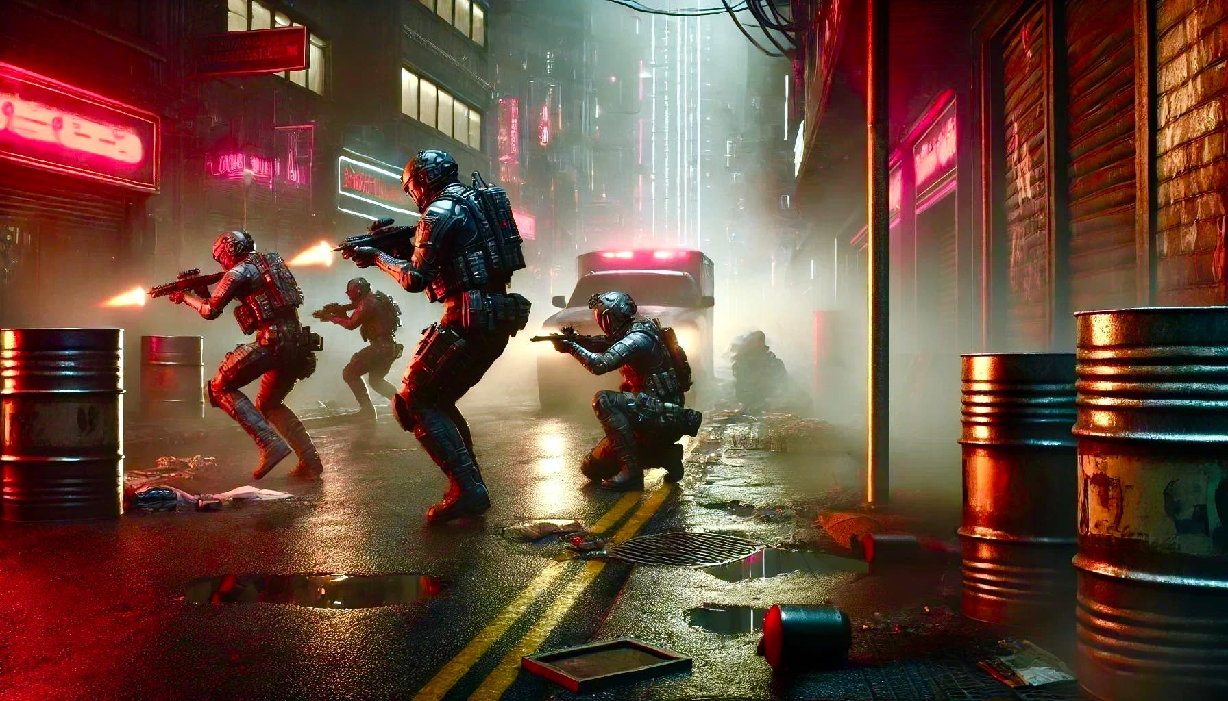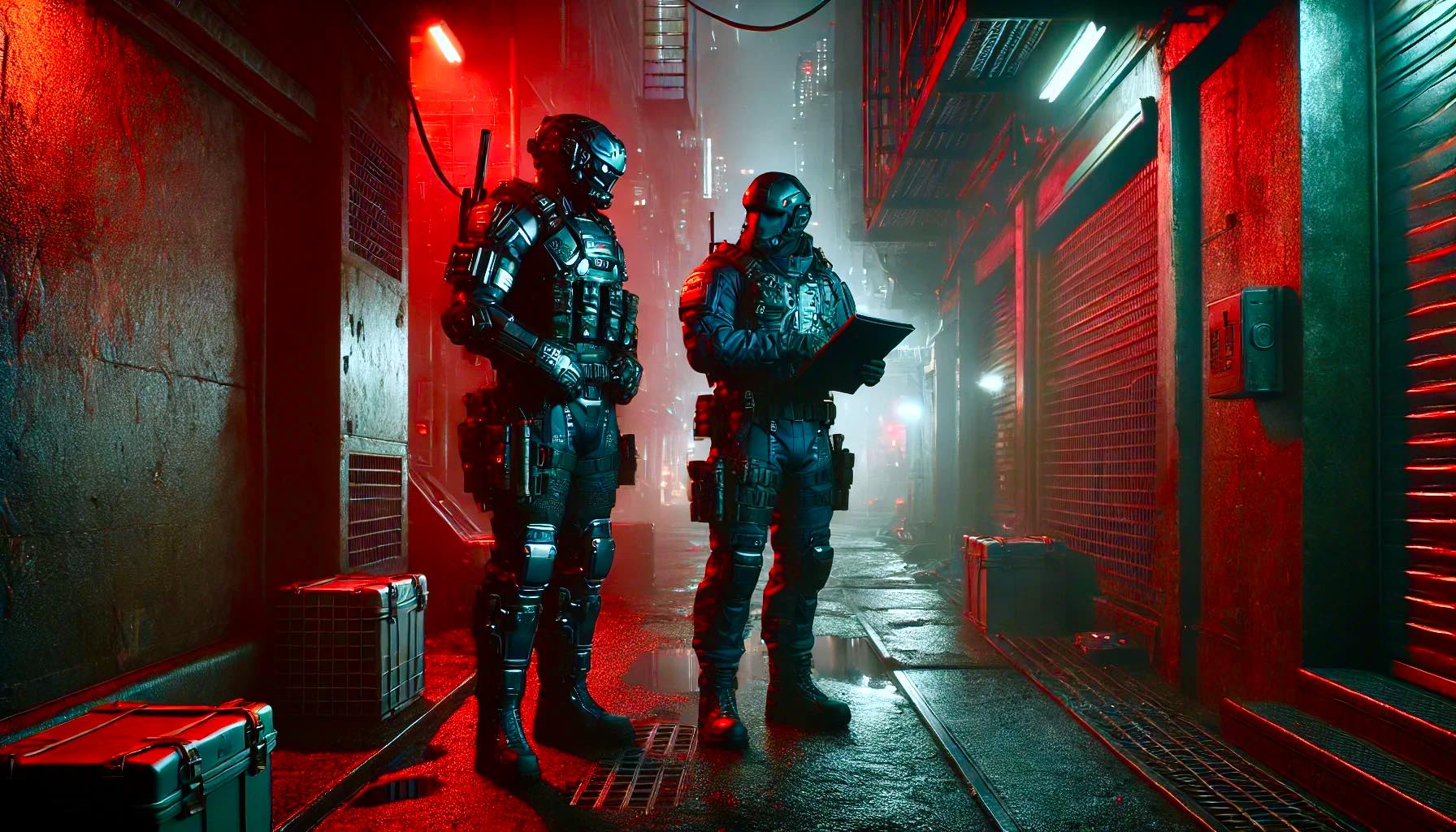 A local paramilitary group pretending to be a peacekeeping force fighting to end the corpo proxy war in Nexis City Seven.