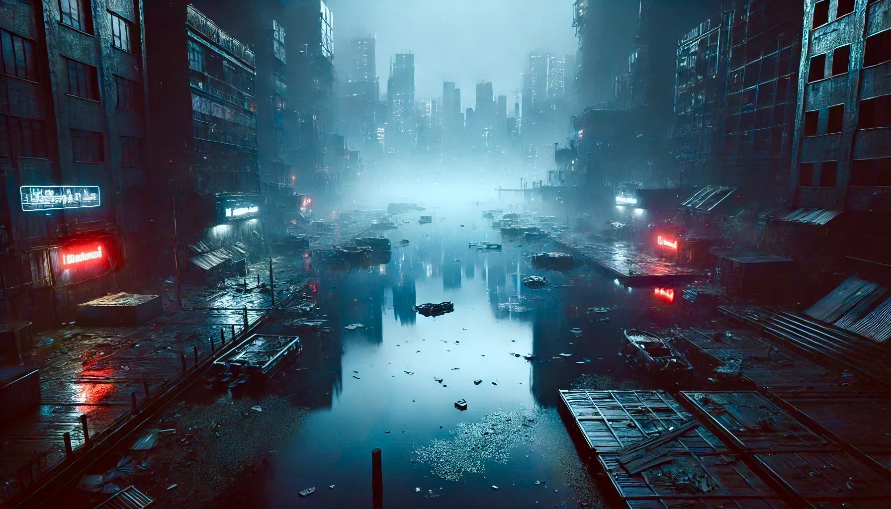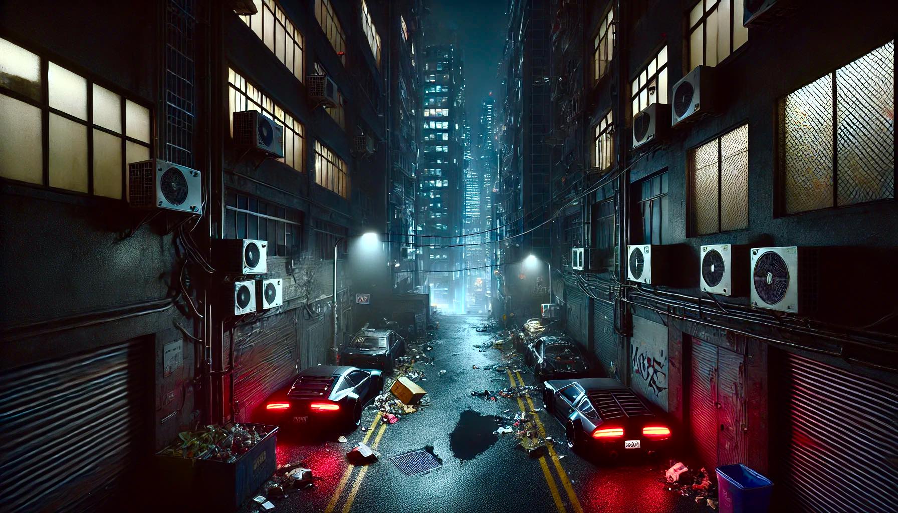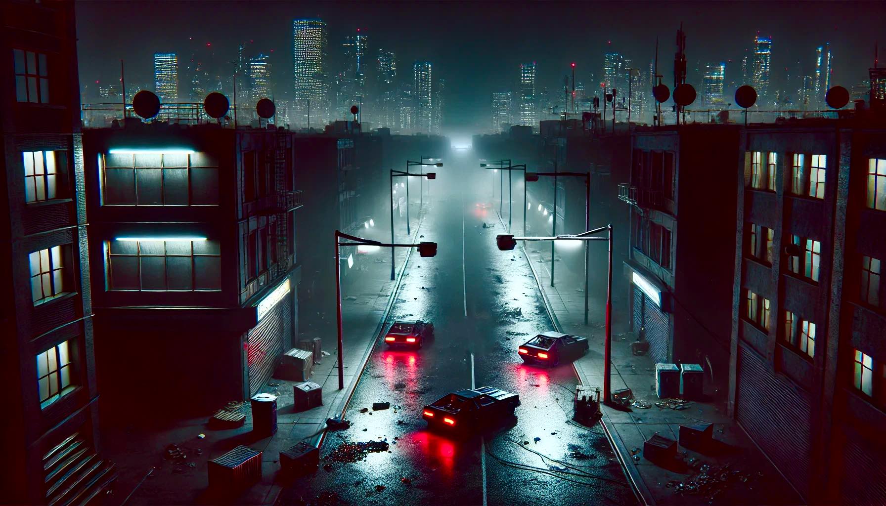What a shit hole. Something of a tourist attraction now, of a wrong kind. Ever since a solar flare knocked out the unprotected power grid a year ago. Ever since everyone who had a safe space outside the city — did leave and never looked back. Ever since the mega corporations, who built the city in the first place, turned it into a web of battlefields, waging war for each other’s dirty little secrets in dark labyrinths of abandoned streets. The city is not entirely without light — but you may want to avoid it.