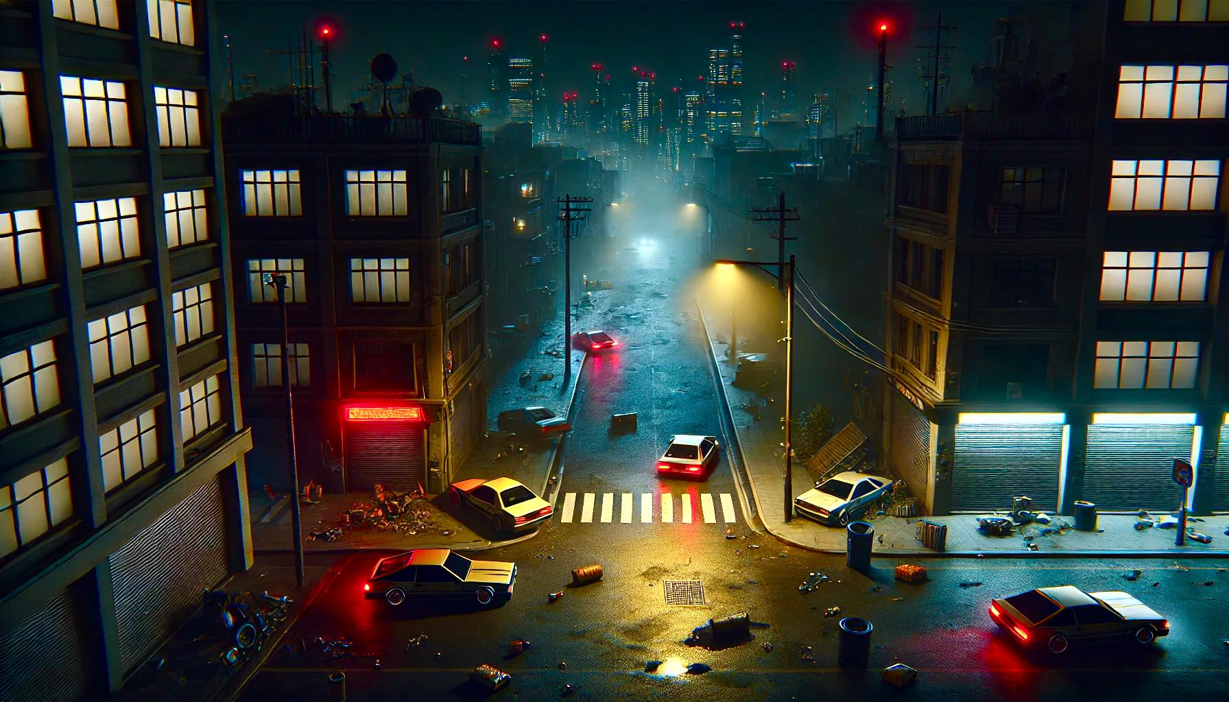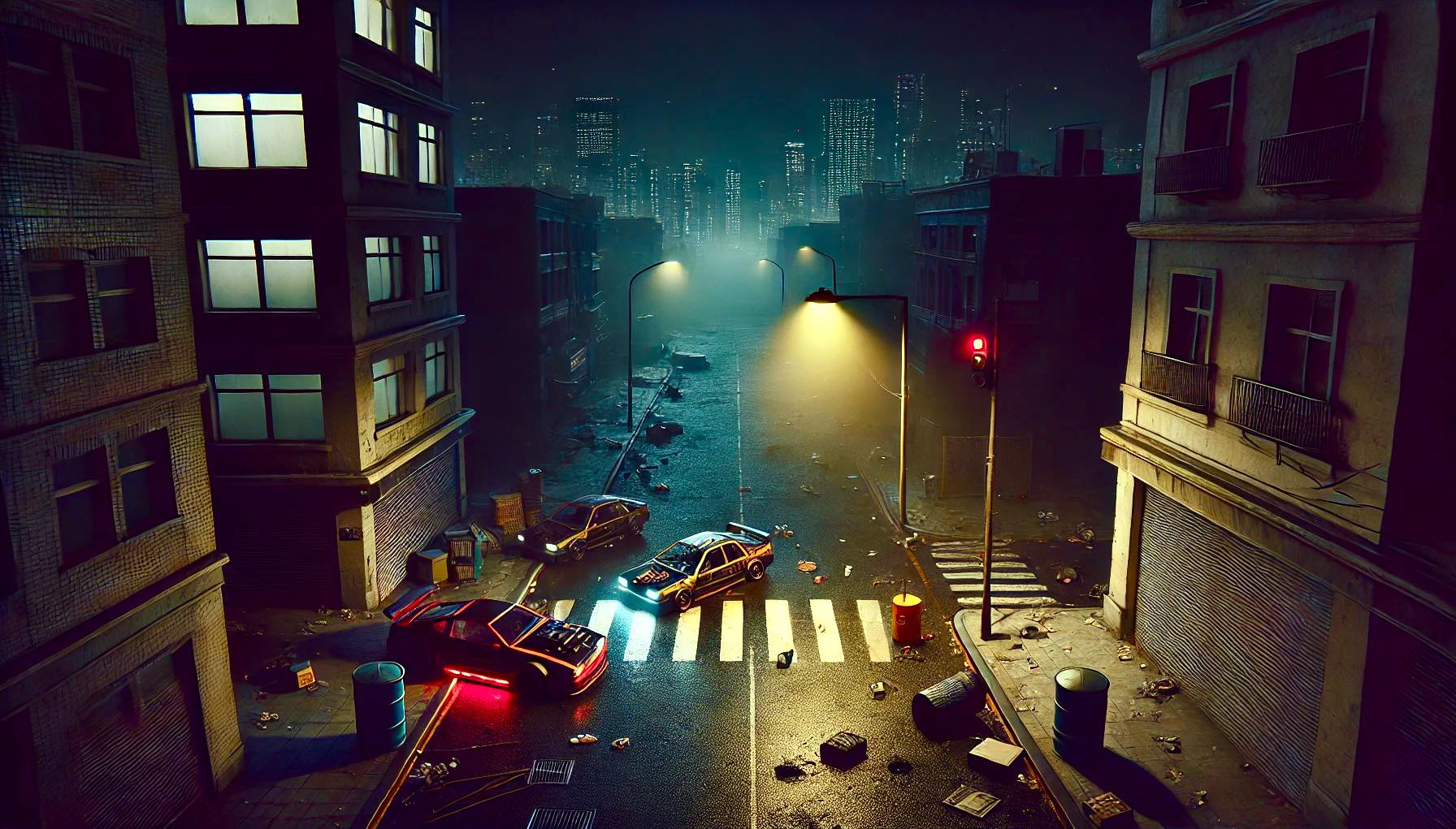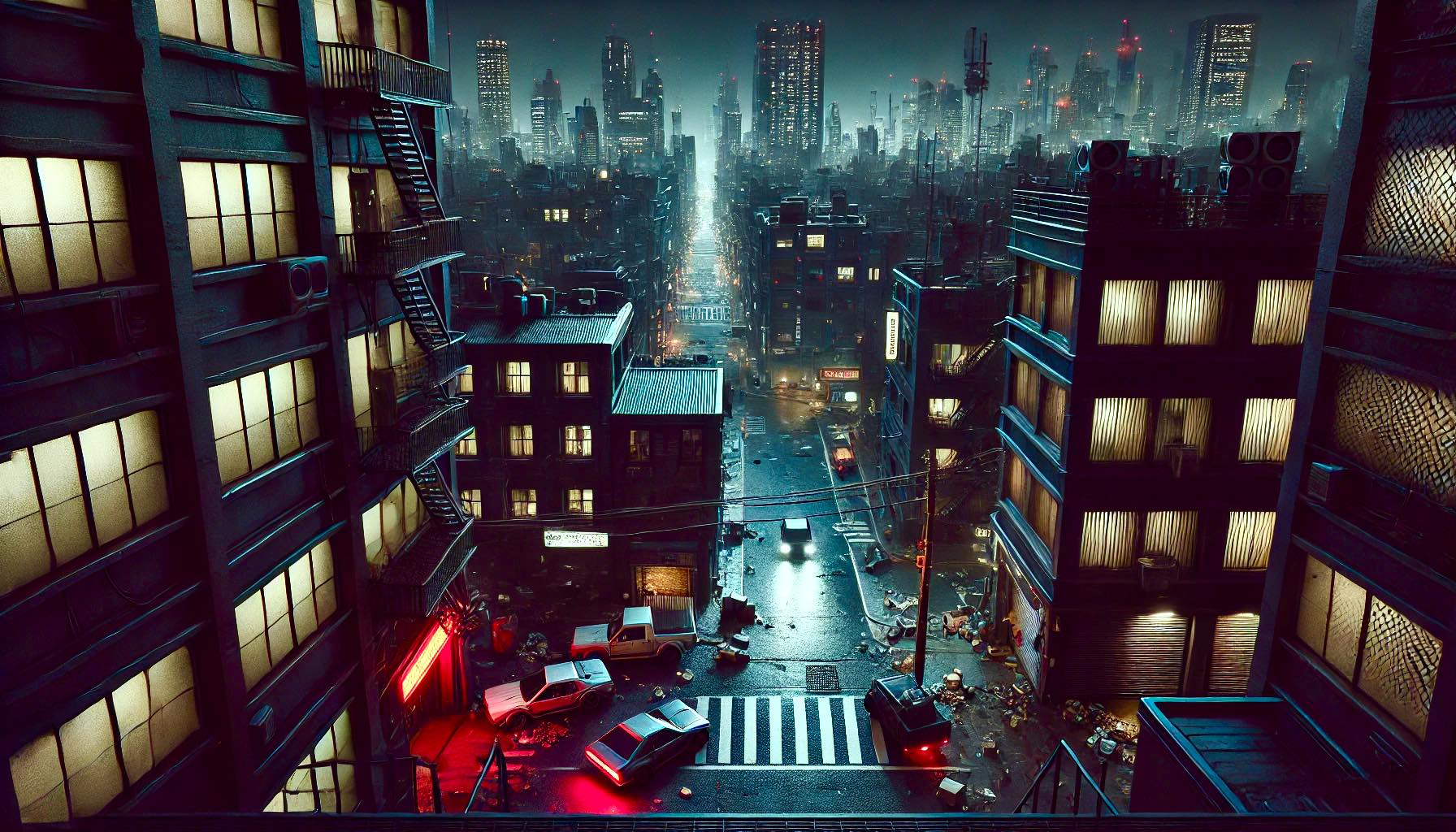 What a shit hole. Something of a tourist attraction now, of a wrong kind. Ever since a solar flare knocked out the unprotected power grid a year ago. Ever since everyone who had a safe space outside the city — did leave and never looked back. Ever since the mega corporations, who built the city in the first place, turned it into a web of battlefields, waging war for each other’s dirty little secrets in dark labyrinths of abandoned streets. The city is not entirely without light — but you may want to avoid it.